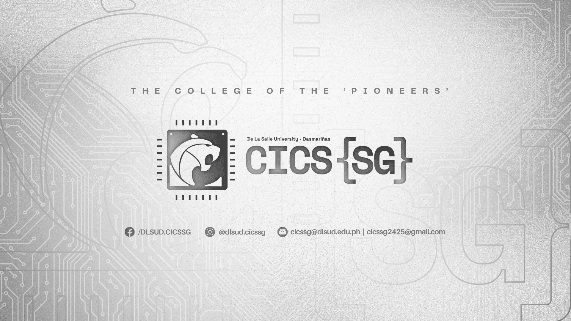 The College of Information and Computer Studies Student Government (CICSSG) is the highest governing student body of the College of Information and Computer Studies (CICS) of De La Salle University – Dasmariñas (DLSU-D). It exists to serve the college of the pioneers, leading innovation and pioneering excellence. It aims to forge new paths, set new standards, and build a legacy of excellence with every step forward.